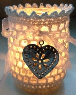 Enda en heklet lyslykt. Synest de er så koselige å tenne om kvelden!